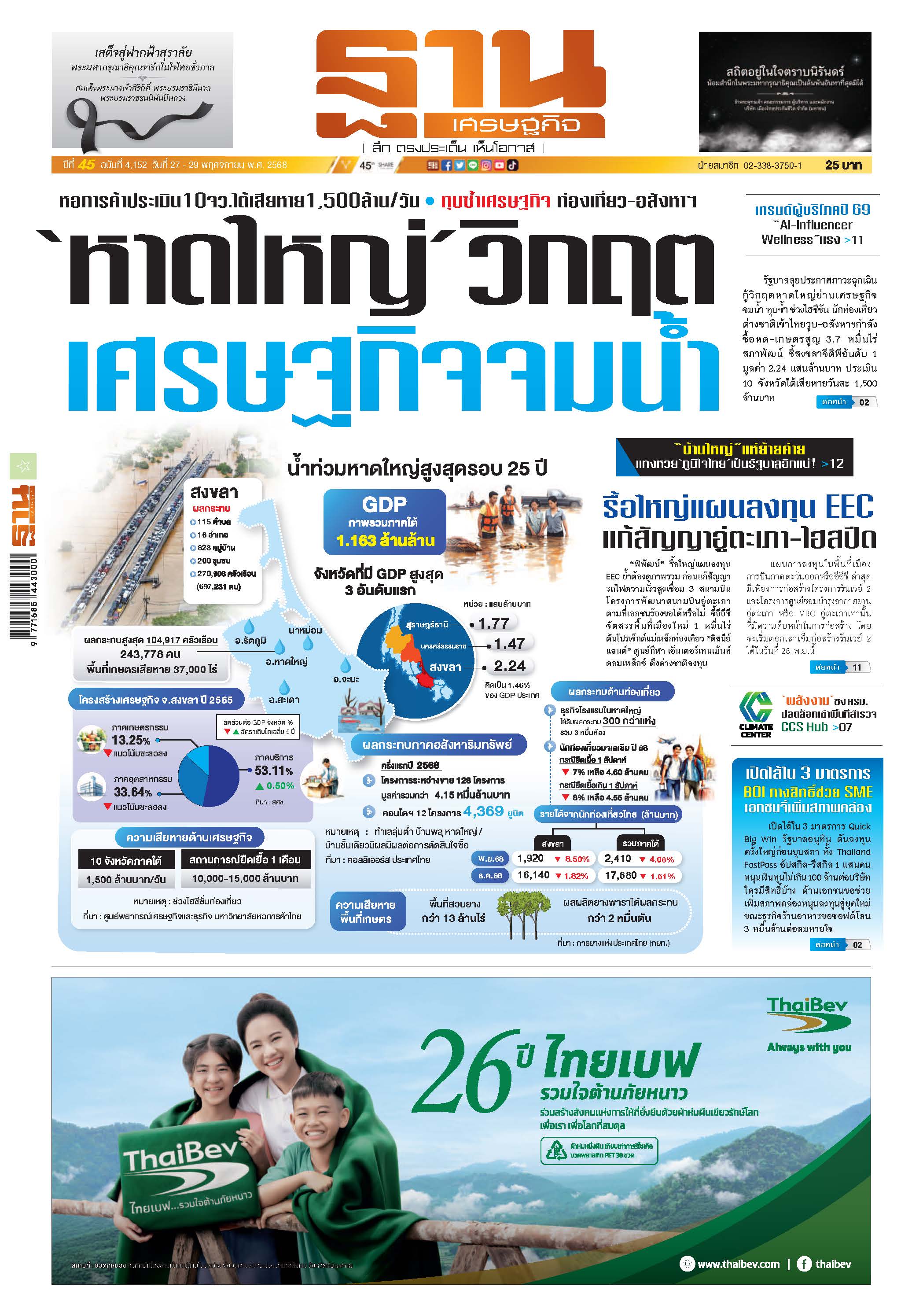 ‘หาดใหญ่’วิกฤต เศรษฐกิจจมนํ้า ทุบซ้ำท่องเที่ยว-อสังหาฯ 10จว.ใต้เสียหาย1,500ล้าน/วัน